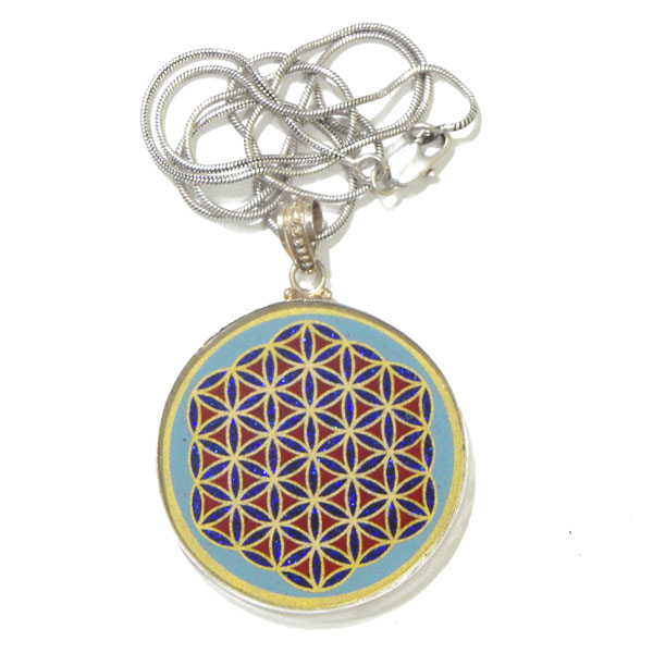 Der Heilige geometrische Anhänger der Blume des Lebens ist ein wunderschönes Kunsthandwerksstück, das mit der alten Technik der Edelstein-Pulver-Malerei gefertigt wurde. Der Anhänger wird mit einer Kette geliefert und ist sofort tragbar.