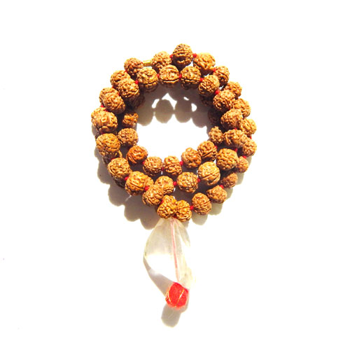 5 Mukhi (Gesicht) Rudraksha Mala mit facettiertem Kristallanhänger