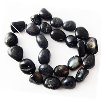 The Black Agate Tumble Beads String features approximately 25 polished beads, each sized between 14mm to 19mm, showcasing the glossy, deep black tones of this powerful stone. Black Agate, revered as a stone of strength and protection, is known for its grounding properties and ability to absorb negative energy.