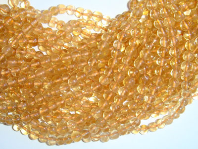 The Citrine 5mm Round Gemstone Beads string features approximately 75 beads on a 14.5-inch string, perfect for crafting pieces that enhance joy, abundance, and personal growth.