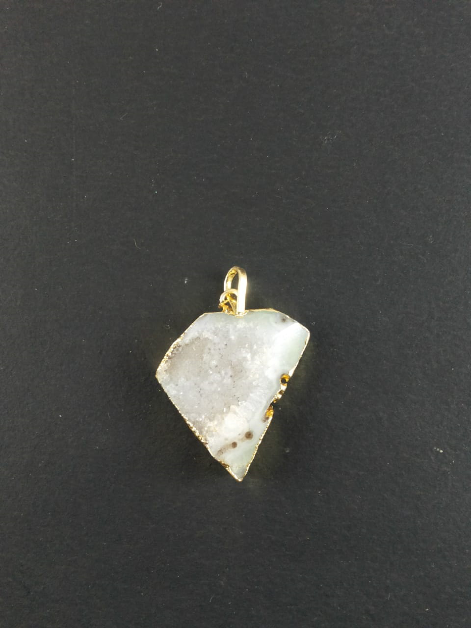 Discover the sparkling allure of our Druzzy Pendant, a stunning natural creation that celebrates individuality and beauty. Each pendant is one of a kind, featuring a gleaming druzy crystal surface that catches and reflects light with a magical shimmer. These pendants vary in size, with heights ranging from 40 mm to 20 mm, widths from 30 mm to 15 mm, and thicknesses between 15 mm and 10 mm, making them ideal for various styles and preferences. Lightweight and versatile, they add a touch of sophistication to casual wear or complete an elegant look for special occasions. Whether for yourself or as a gift, the Druzzy Pendant is a timeless blend of nature's beauty and artistic design.