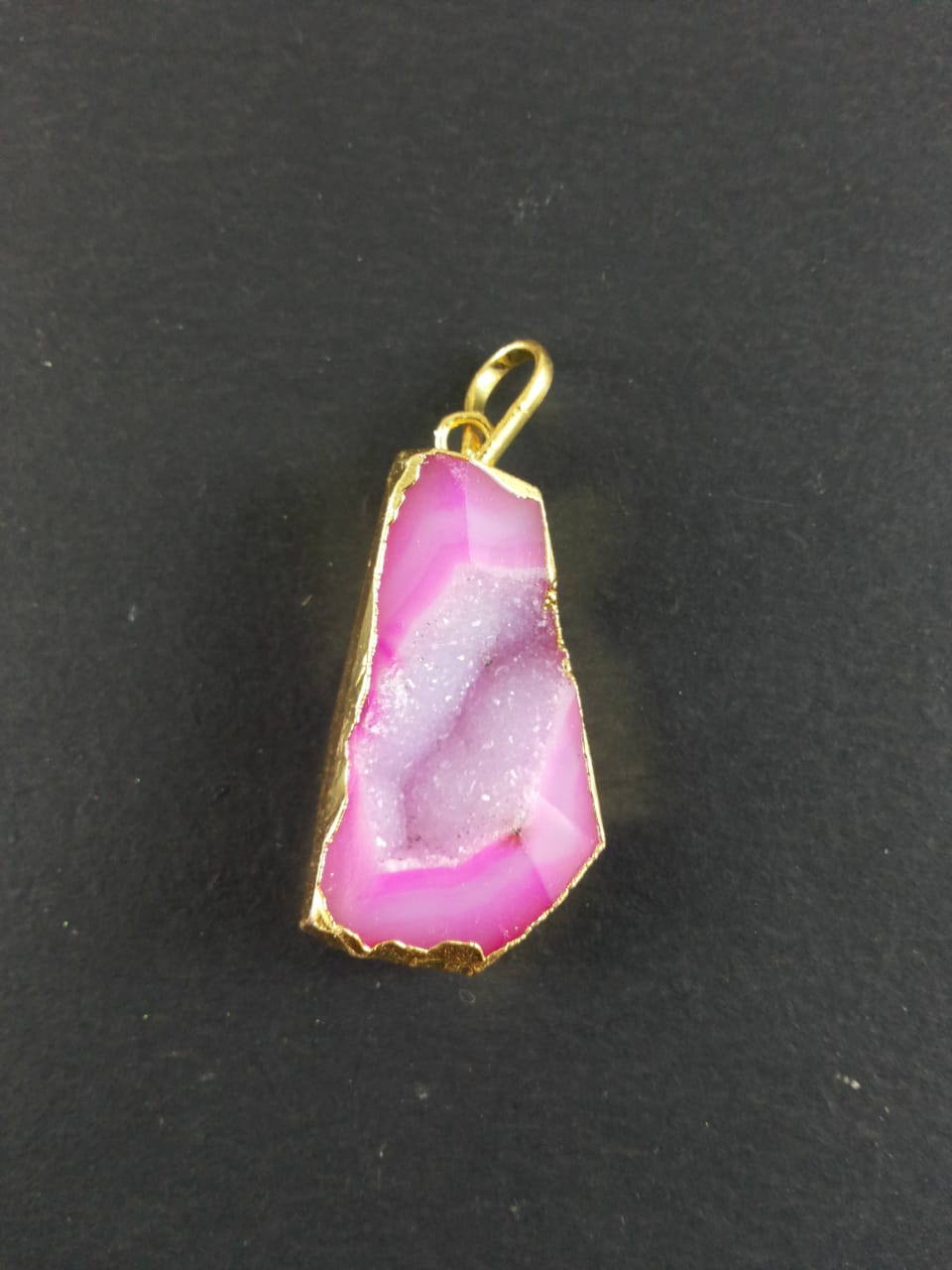 Experience the enchanting beauty of our Druzzy Pendant, a natural gem that exudes elegance and individuality. Each pendant is a one-of-a-kind creation, featuring a dazzling druzy crystal surface that radiates light and brilliance. The pendants come in a versatile size range, with heights from 40 mm to 20 mm, widths from 30 mm to 15 mm, and thicknesses of 15 mm to 10 mm, making them suitable for any style or occasion. Lightweight yet striking, these pendants make a perfect addition to your jewelry collection or a thoughtful gift for someone special. Elevate your look with this stunning piece that blends the beauty of nature with timeless design.
