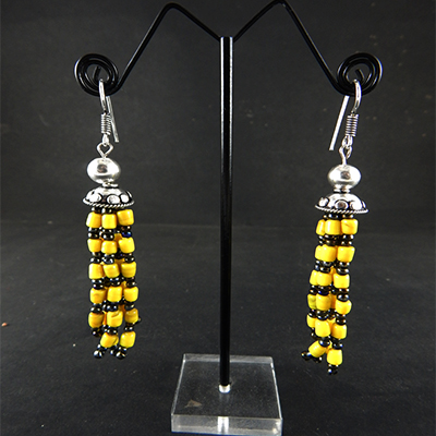 These fancy earrings are adorned with eye-catching glass beads, crafted to enhance your style with a splash of color and sophistication. The intricate arrangement of the beads creates a unique and stylish look, perfect for making a statement or adding a pop of brightness to your ensemble. Lightweight and comfortable, they are suitable for both casual and festive occasions. Whether worn alone or paired with other jewelry, these earrings bring a charming and fashionable touch to your accessories collection.