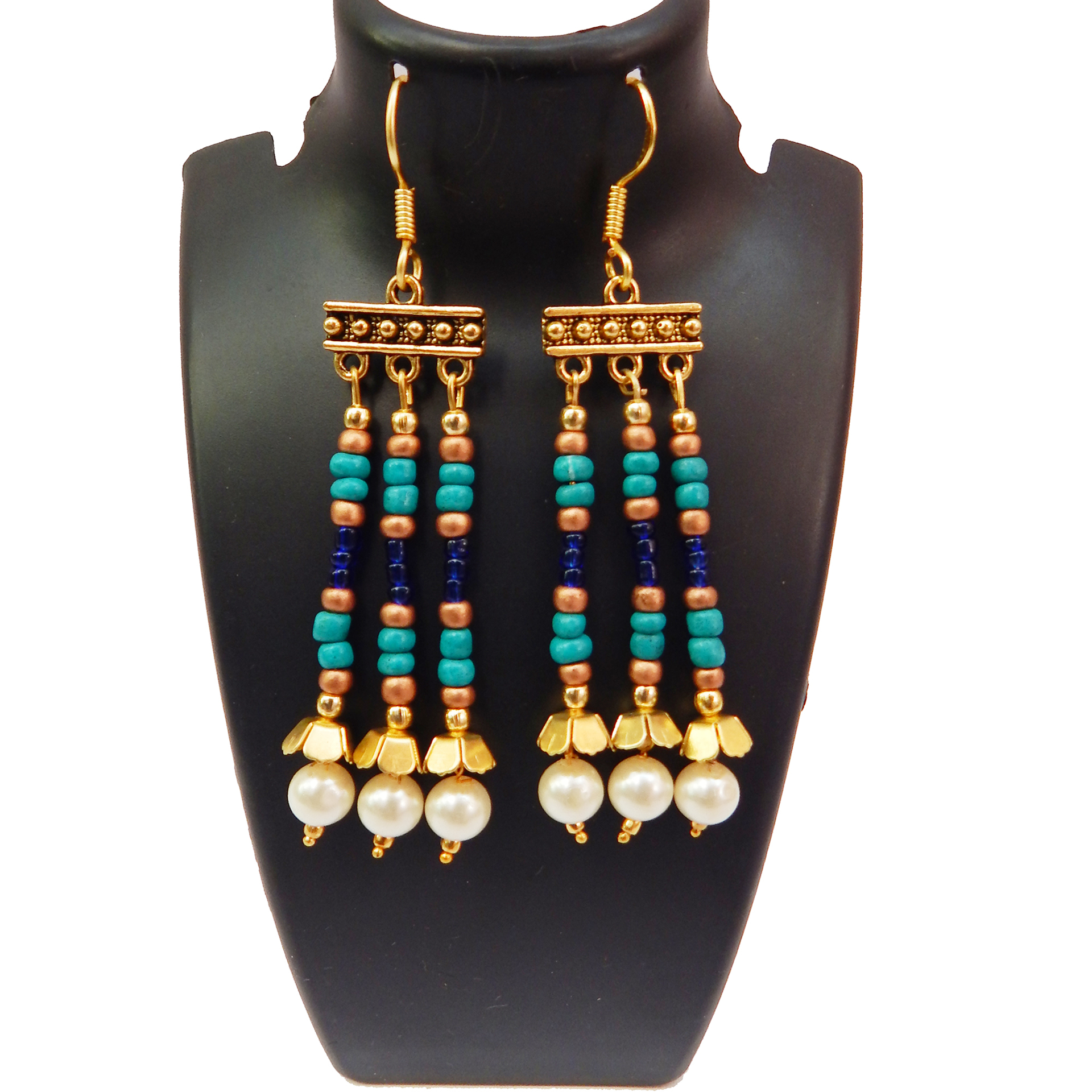 Unveil your elegance with Fancy Resam Thread Work Earrings, a beautiful blend of traditional artistry and modern design. Featuring intricate Resam thread work combined with polished metal beads, these earrings exude sophistication and cultural richness. Lightweight and versatile, they are perfect for festive occasions, casual outings, or formal gatherings, making them a must-have addition to your accessory collection.