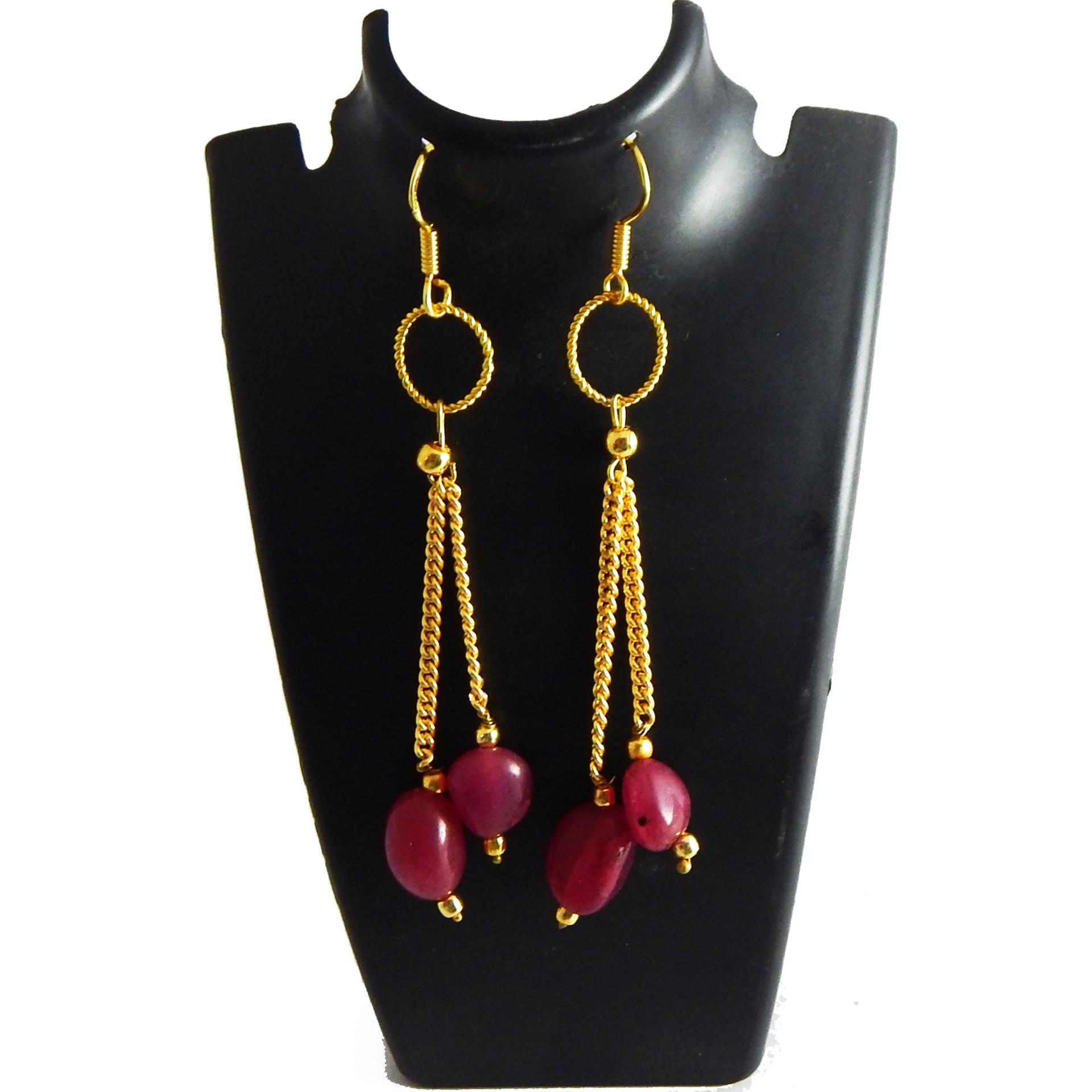 Fancy Ruby Agate Tumble Earrings with Gold Polish Copper Chain.