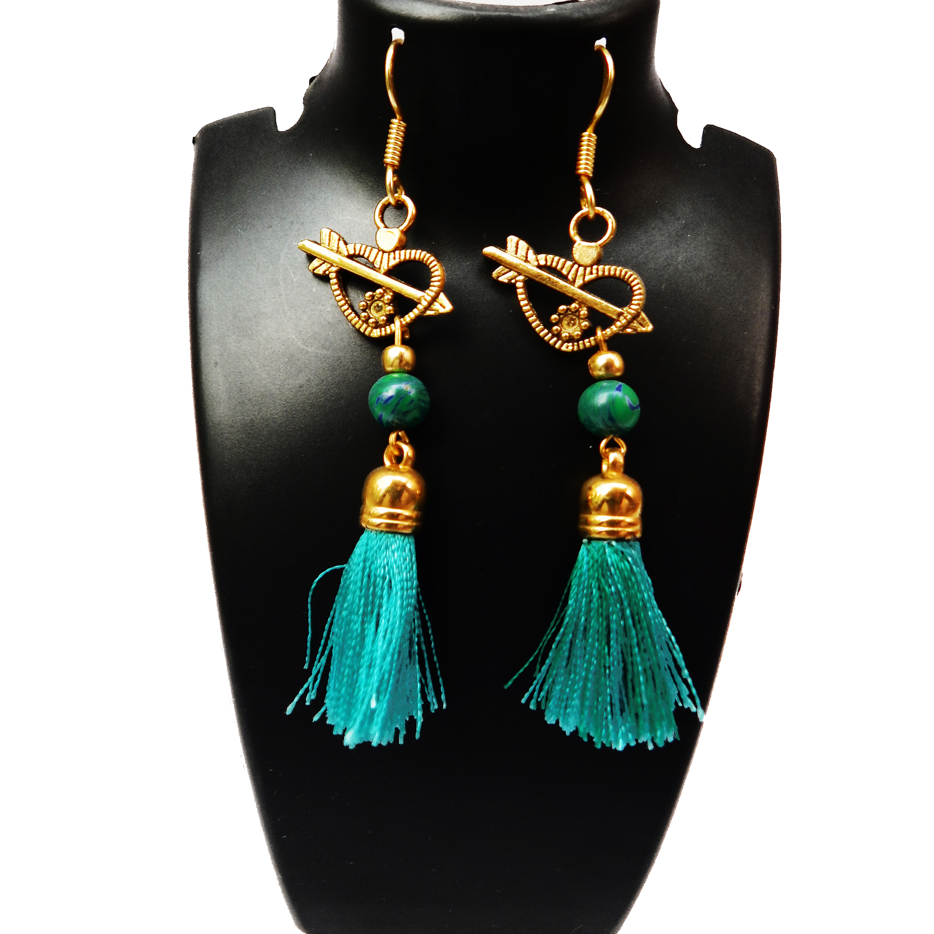 Gem Stone Azurite (Manmade)Fancy tassel Earrings .