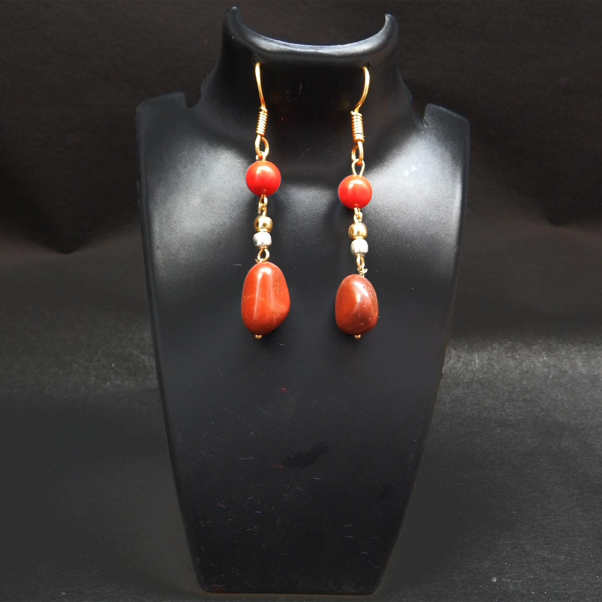 Fancy Red Jasper Tumble Earrings.