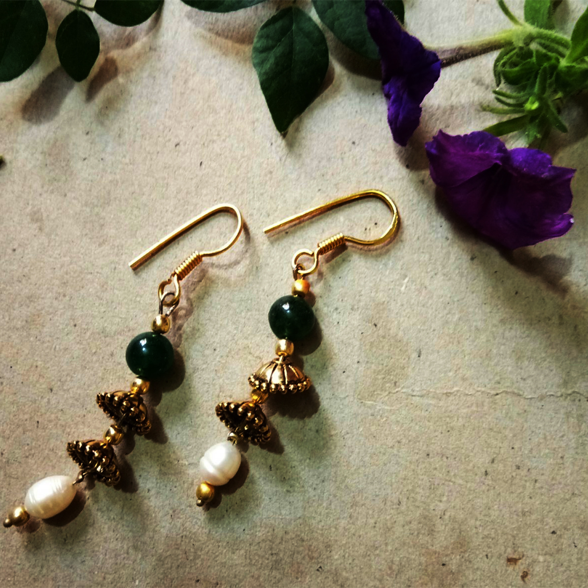 Gem Stone GreenAventurine with real pearl Fancy Earrings.