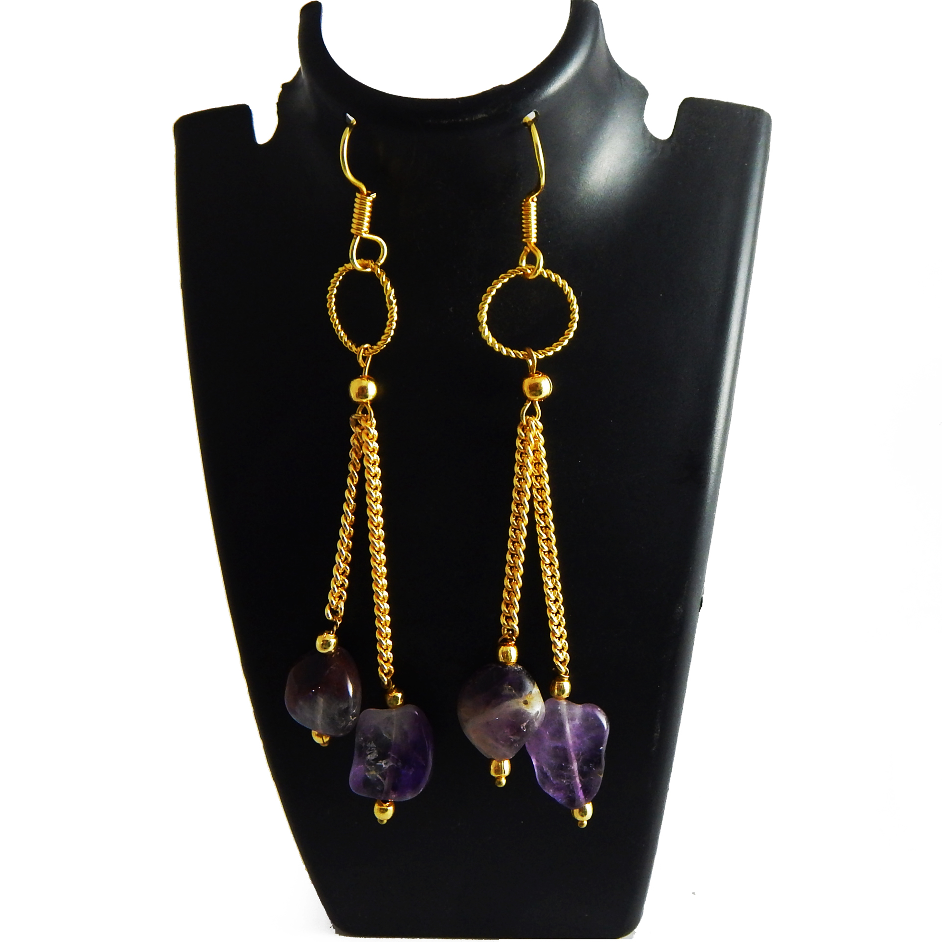 Fancy Amethyst tumble Earrings with gold Polish Copper Chain.
