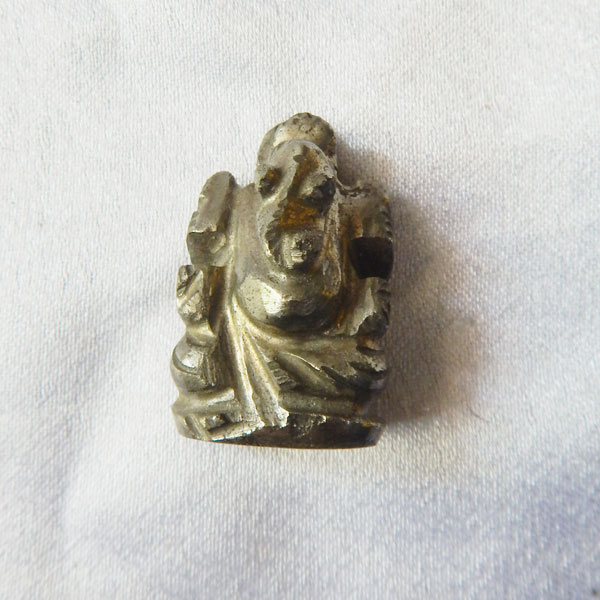This Pyrite Ganesha Idol, sized at 1.5 inches, is a powerful fusion of divine energy and earthly prosperity. Hand-carved from natural Pyrite, also known as "Fool’s Gold", this gemstone idol represents Lord Ganesha, the remover of obstacles and the deity of intellect and success. Pyrite is highly regarded for its strong protective and manifestation properties, promoting wealth, confidence, and energy shielding. Ideal for placing in homes, workspaces, or spiritual corners, this idol helps to repel negativity, attract financial growth, and inspire mental clarity, making it both a sacred talisman and a unique decorative piece.