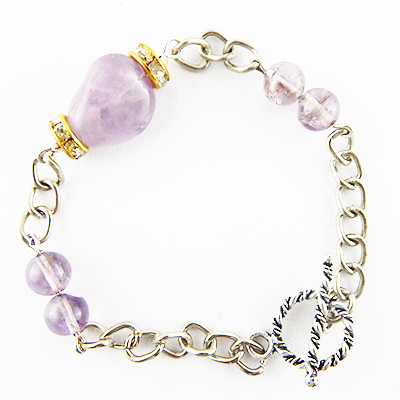 The Amethyst Tumble and Beads Bracelet is a serene companion for your spiritual journey. Amethyst, revered for its tranquil and protective properties, aids in reducing stress, enhancing intuition, and encouraging restful sleep. The addition of silver-polished copper beads amplifies its elegance, making it a versatile accessory for spiritual or everyday wear. Whether used during meditation or as a fashion statement, this bracelet brings peace and poise to your life.