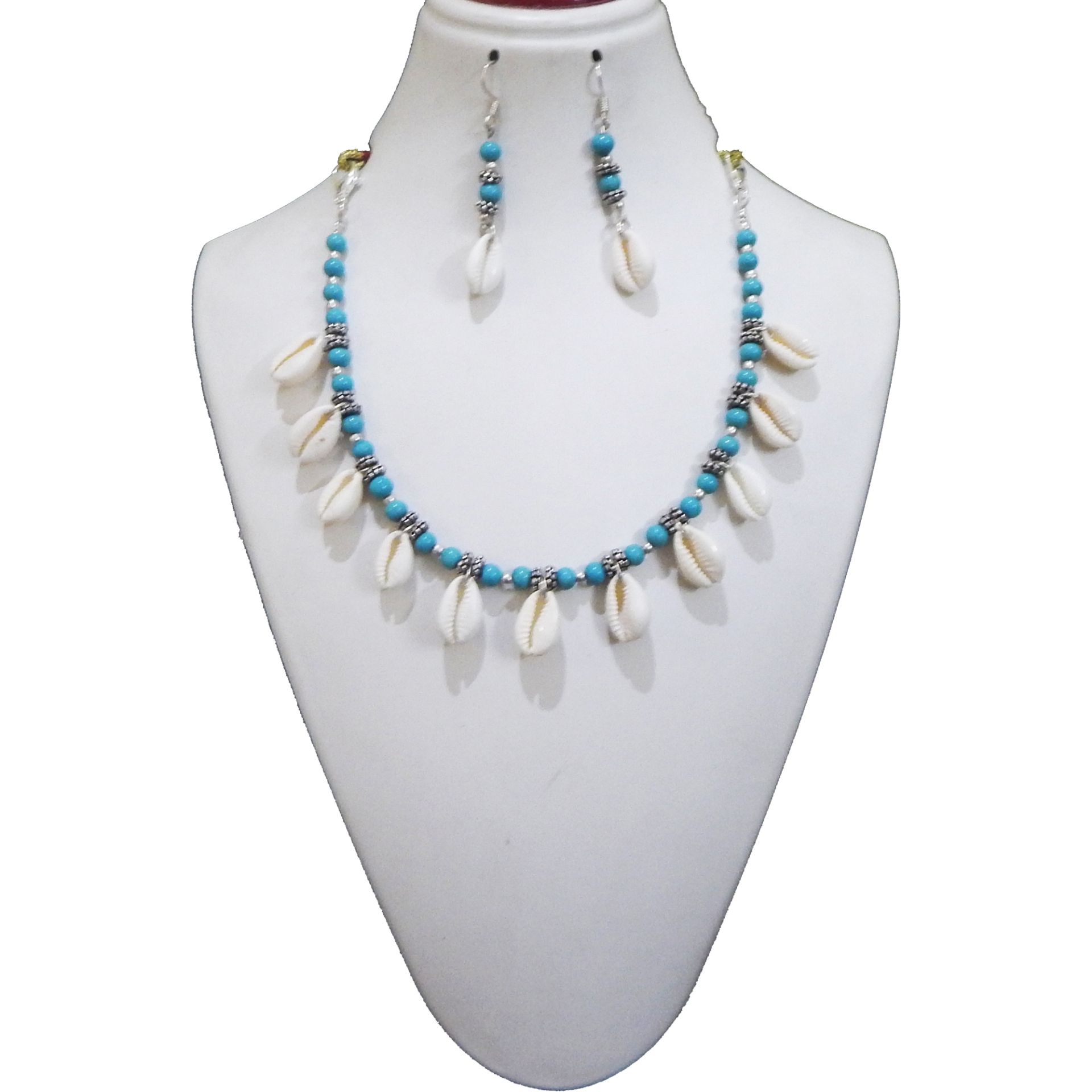 - Finishing Detail : Sea Shell & Glass Beads with Silver Polish Copper Findings Necklace is 6" to 7" inches long with matching earrings.