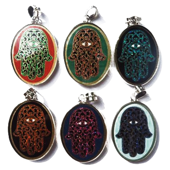 Embrace the powerful symbolism of the Hamsa Pendant, an ancient talisman known for its protective qualities against negative energies and bringing blessings of good fortune, health, and happiness. This 35 mm pendant is meticulously crafted using the sacred art of gemstone powder painting, reflecting high-quality artisanship and spiritual significance.