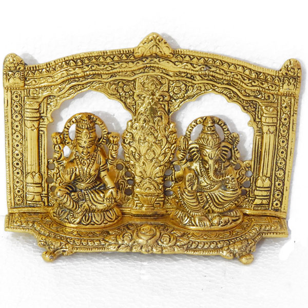 The combination of Goddess Lakshmi, the deity of wealth and fortune, and Lord Ganesha, the remover of obstacles, creates a powerful spiritual symbol. The gold polish enhances its beauty, making it a shining centerpiece in any sacred space.