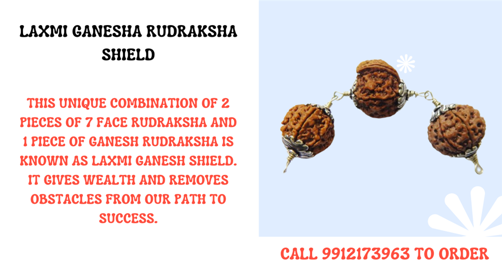 Wearing the Laxmi Ganesha Rudraksha Shield, which comprises two pieces of 7 Face Rudraksha and one piece of Ganesh Rudraksha in a chain, is believed to hold great significance and bring several positive aspects into one's life. Here's more information about the significance of wearing this combination: