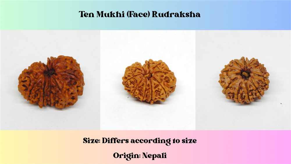 - The ten-faced Rudraksha is believed to offer wearers security and peace of mind by acting as a protective shield.