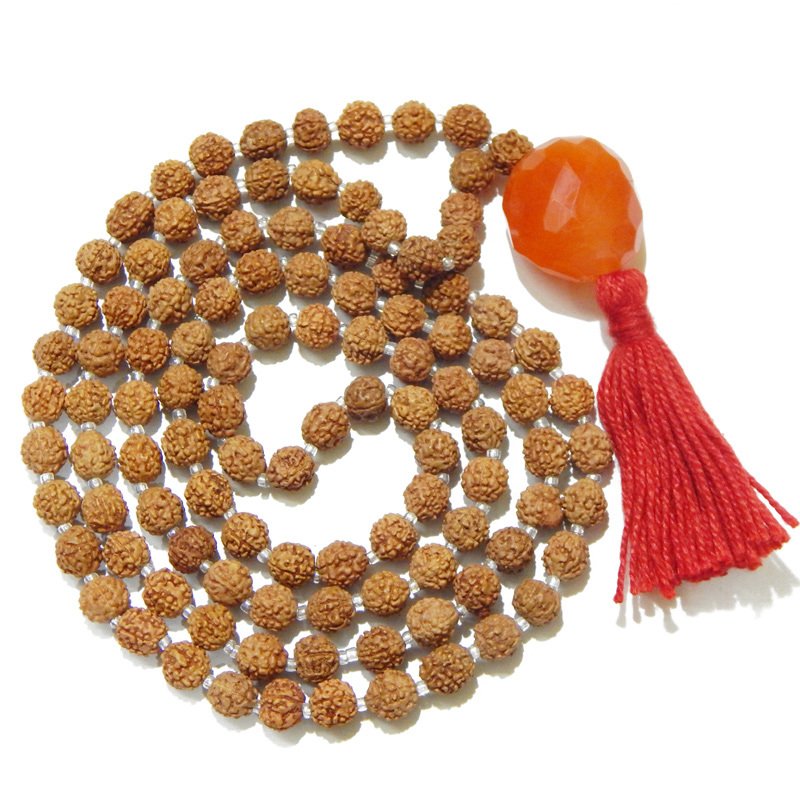 Die Kombination der Rudraksha-Perlen und des Carnelian-Anhängers schafft eine harmonische Verbindung von Tradition und Moderne, die sowohl spirituelle Praktizierende als auch Liebhaber einzigartiger Schmuckstücke anspricht. Die 5-facettierte Rudraksha ist dafür bekannt, Klarheit und Fokus zu fördern, was sie zu einem idealen Begleiter für die Vertiefung der spirituellen Praxis macht.