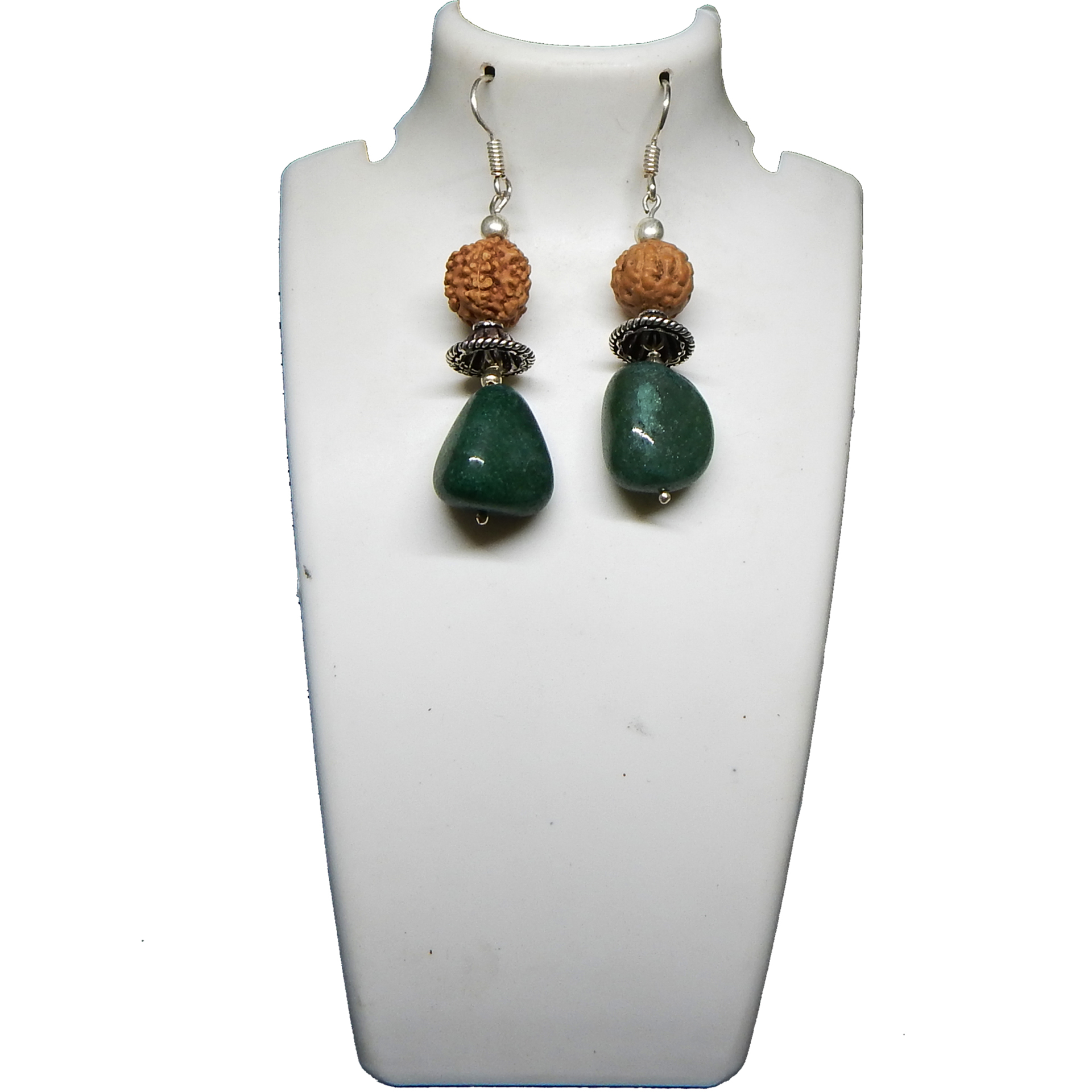 Green Aventurine, known as the "Stone of Opportunity," fosters emotional healing, encourages personal growth, and invites prosperity. When paired with the grounding energy of Rudraksha beads, this earring set promotes inner peace, clarity, and overall well-being.