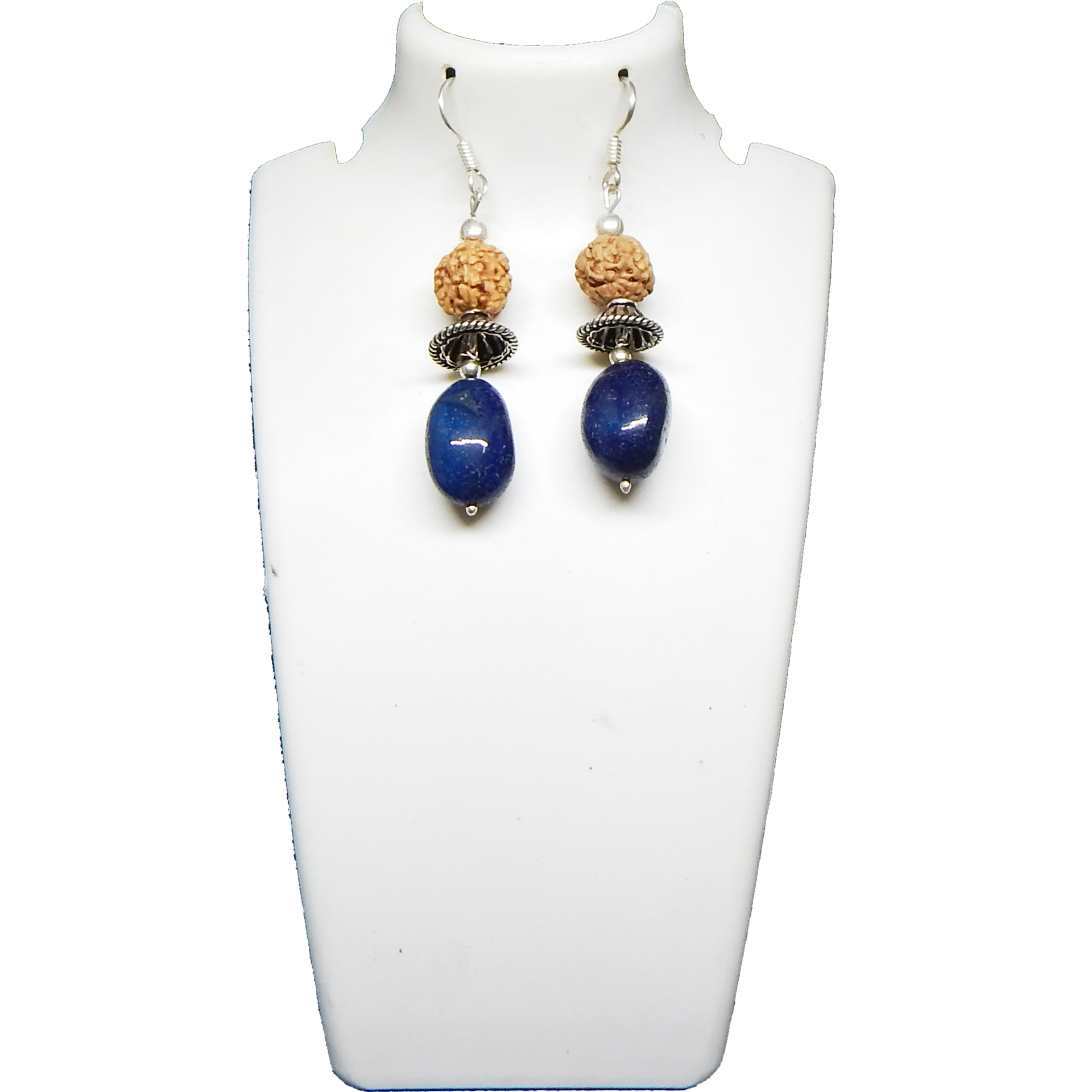 Discover tranquility and spiritual connection with the Meditation Earring Set, featuring 10mm 5-Face Rudraksha beads, Blue Agate tumbles, and matching tassels. This elegant accessory not only enhances your meditation practice but also adds a touch of refined style to your ensemble.