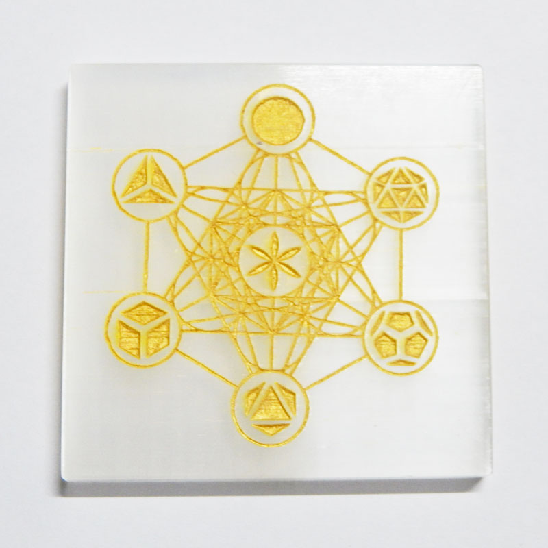 Selenite Plate with Carved metatron's cube recharges and cleanse crystals and other spiritual items. It restores crystals natural vibrations by cleansing its negative energies.