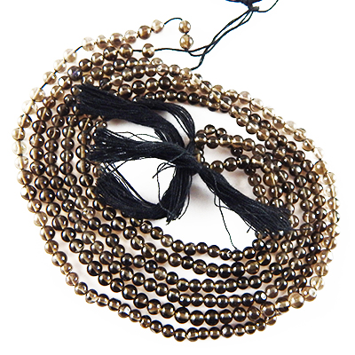 Smoky Quartz 4mm round gemstone beads. Smoky Quartz gemstone mala beads.