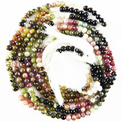 Tourmaline 4mm round gemstone beads. Tourmaline gemtone mala beads.