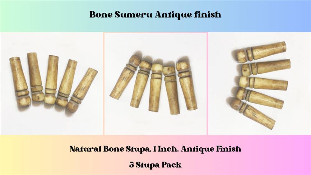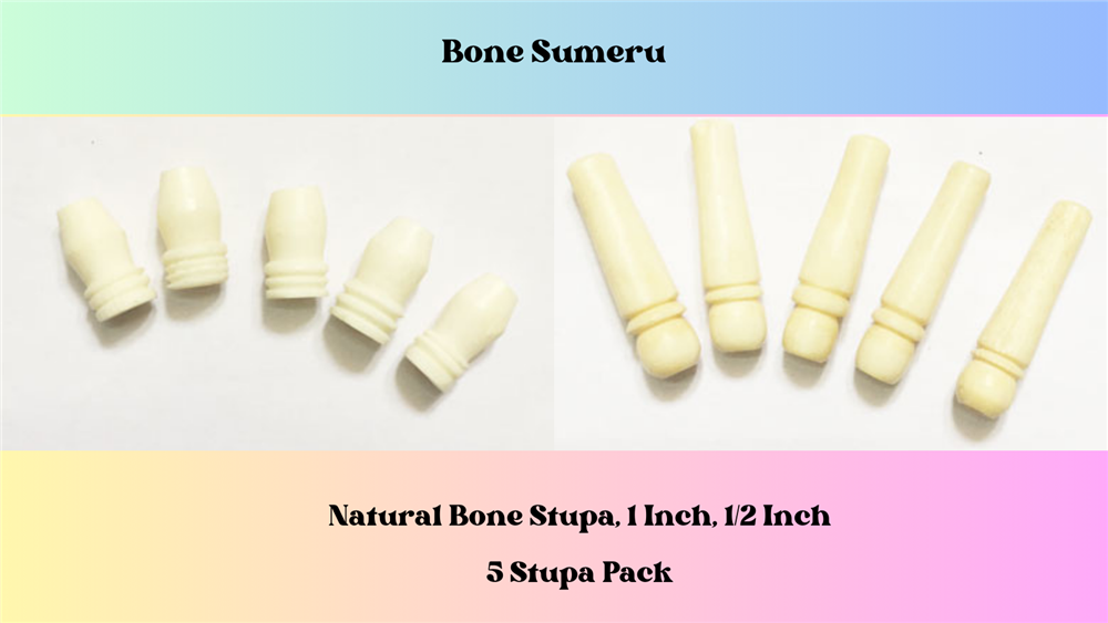The Bone Sumeru Stupas come in one inch and half sizes, and are crafted from real bone material.
