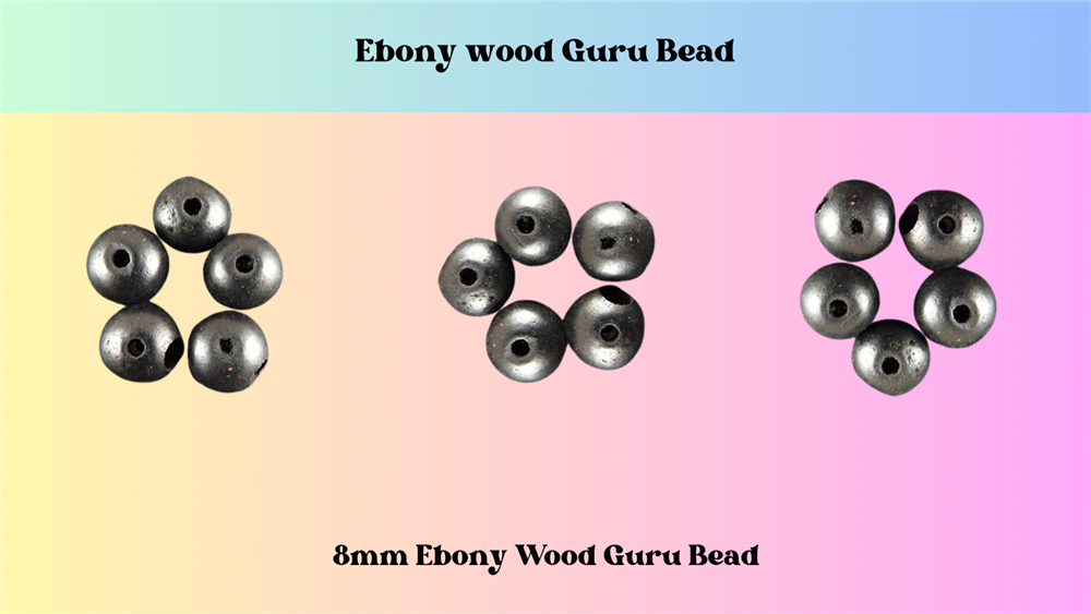 - Ebony wood, which is prized for its deep, dark color and is frequently used for its durability and silky texture, is used to make the Guru beads.