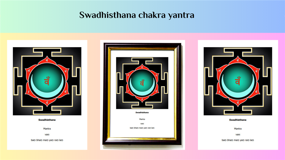 The Swadhisthana chakra yantra is a Hindu image used to adjust the sacral chakra, overseeing feelings, innovativeness, and sexuality. It highlights circles, triangles, and lotus petals, representing enthusiasm and essentialness. By contemplating this yantra, professionals can advance close to home soundness, exotic mindfulness, and imaginative motivation.