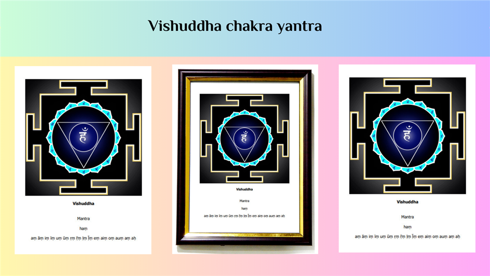 In Hinduism, the Vishuddha Yantra, which represents the throat chakra, is a powerful image. This chakra is connected to imagination, self-articulation, and communication.People who practice otherworldliness and the Vishuddha Yantra can work on their capacity to communicate their thoughts certainly and successfully in both individual and expert settings. Its intricate mathematical plan goes about as a visual instrument to assist with centering expectation and utilize this energy community's true capacity for self-improvement and change.