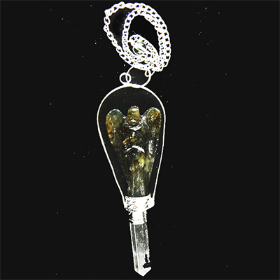Labradorite Pendulum add Pencil Cut Crystal Pendant with Metal Chain