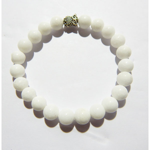 White Jade Gemstone Bracelet made with 8mm Gemstone Beads.
