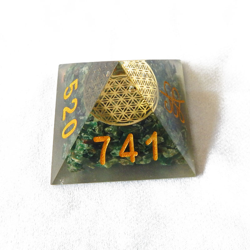 The Green Zibu Orgone Pyramid is a beautifully crafted energy tool designed to promote healing, emotional balance, and spiritual growth. Green Zibu symbols are associated with love, compassion, harmony, and heart-centered energy, making this pyramid especially effective for fostering emotional well-being and attracting positive relationships.